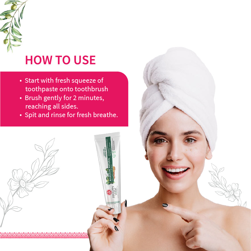 AYOUTHVEDA Ayurvedic Charcoal White Toothpaste is a unique combination of bamboo charcoal & precious extracts of herbs to provide deep cleaning & anti cavity action. It promotes stain removal to ensure complete cleansing.