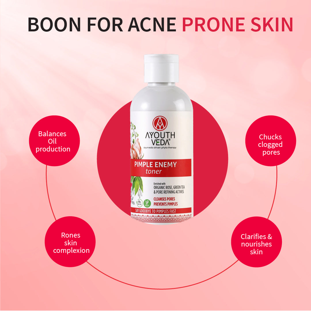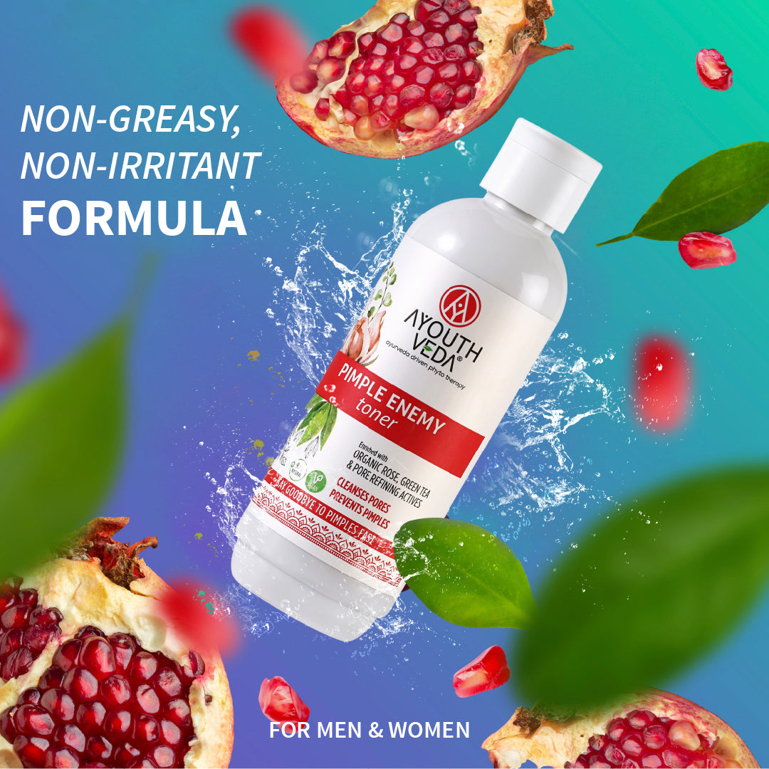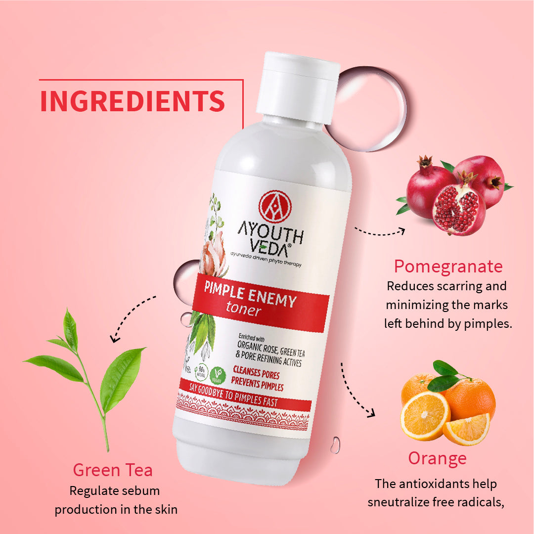 AYOUTHVEDA Clear Skin Toner delicately rejuvenates your skin with its natural pore-refining properties. It effectively clears pores, maintaining skin clarity throughout the day by creating a protective barrier on your face.